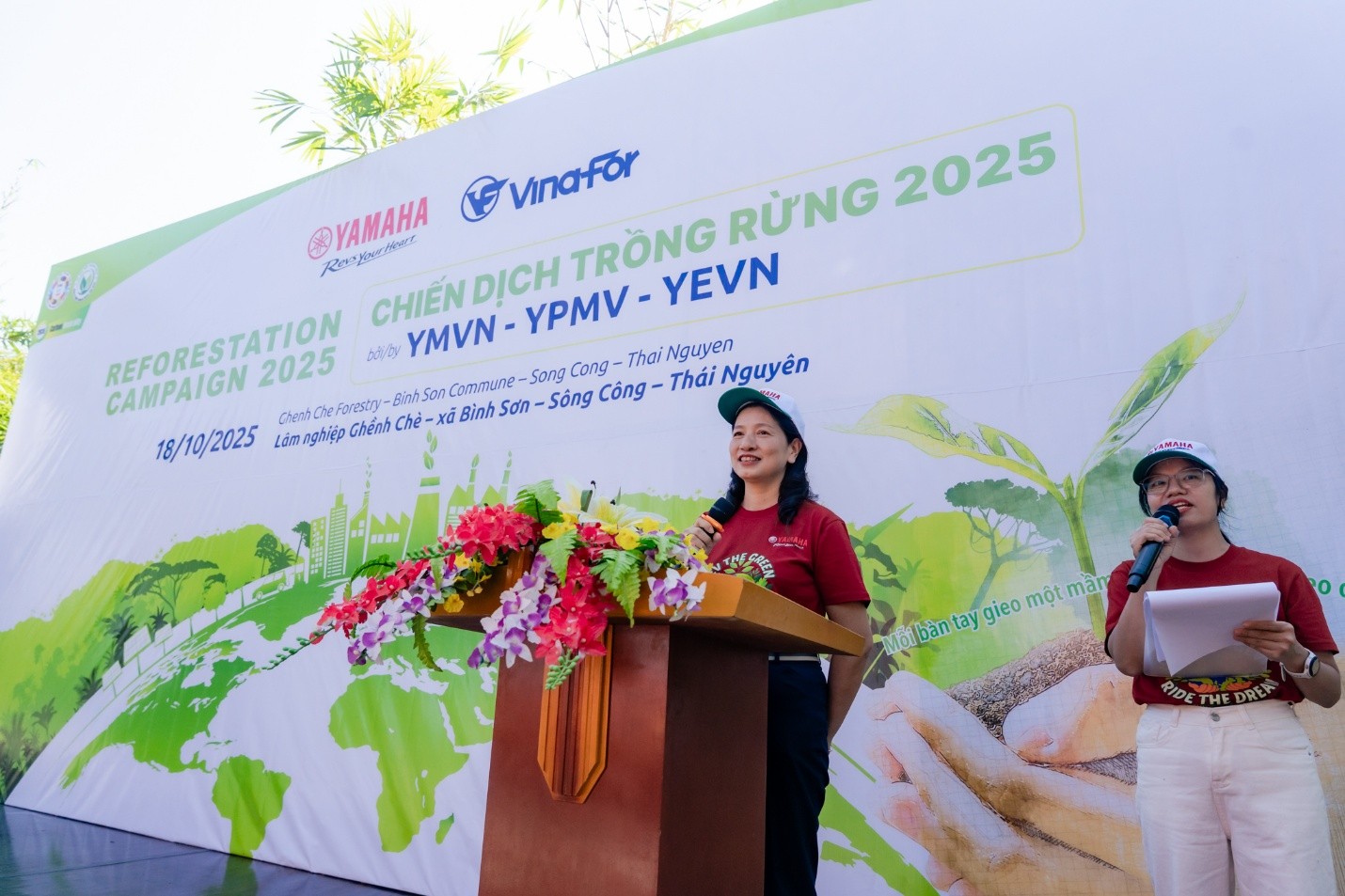 Với vai trò là đơn vị đồng hành, Tổng công ty Lâm nghiệp Việt Nam không chỉ tạo điều kiện thuận lợi về địa điểm và hướng dẫn kỹ thuật, mà còn thể hiện tinh thần trách nhiệm sâu sắc trong công tác bảo vệ và phát triển rừng bền vững. Đại diện Lãnh đạo Vinafor bà Ngô Thị Thúy Mai – Thành viên HĐQT, Phó Tổng giám đốc chia sẻ: “ Bằng trách nhiệm và nhiệt huyết của mỗi cá nhân trong Công ty Yamaha Motor Việt Nam và Vinafor, chúng ta sẽ phối hợp tổ chức tốt các chương trình trồng cây gây rừng và các hoạt động bên lề khác nhằm truyền thông, nâng cao nhận thức cộng đồng về ảnh hưởng của biến đổi khí hậu, về tầm quan trọng của cây xanh trong việc giảm thiểu lượng khí CO2 trong khí quyển, từ đó thay đổi hành vi, thói quen tiêu dùng, ứng xử thân thiện với môi trường, tạo thói quen sống xanh và chan hòa với thiên nhiên, vì một môi trường sống trong lành, an toàn và bền vững...”