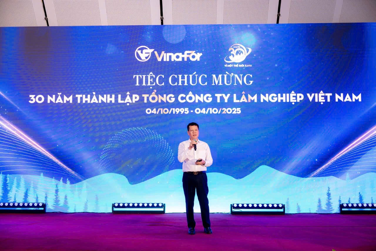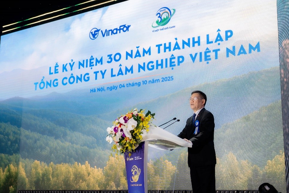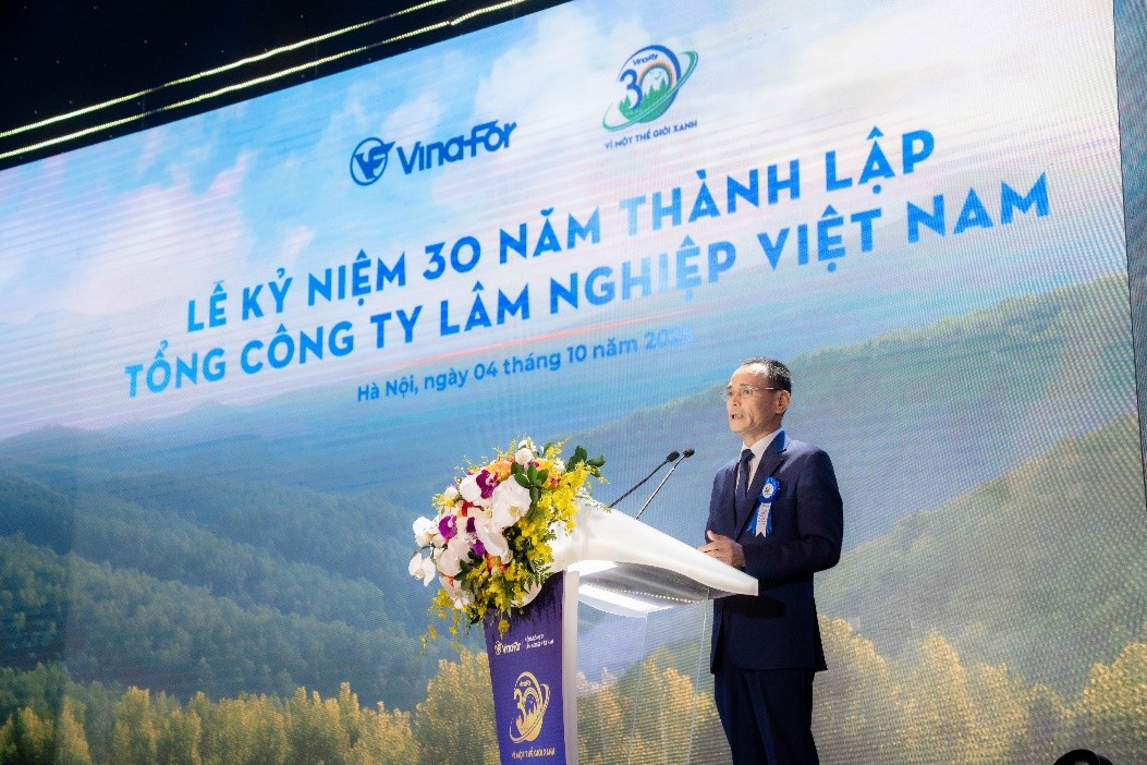 Phát biểu tại buổi lễ, Đ/c Phí Mạnh Cường – Bí thư Đảng uỷ, Chủ tịch Hội đồng quản trị Tổng công ty Lâm nghiệp Việt Nam nhấn mạnh: “Trải qua 30 năm hình thành và phát triển, Vinafor đã và đang góp phần đưa hoạt động lâm nghiệp phát triển trên phạm vi cả nước, tham gia xóa đói giảm nghèo trên những mảnh đất vùng cao, vùng biên giới, vùng đồng bào dân tộc thiểu số; liên kết với bà con tạo vùng nguyên liệu cho hoạt động chế biến gỗ; góp phần phát triển kinh tế xanh, kinh tế tuần hoàn, tăng hấp thụ cacbon”.