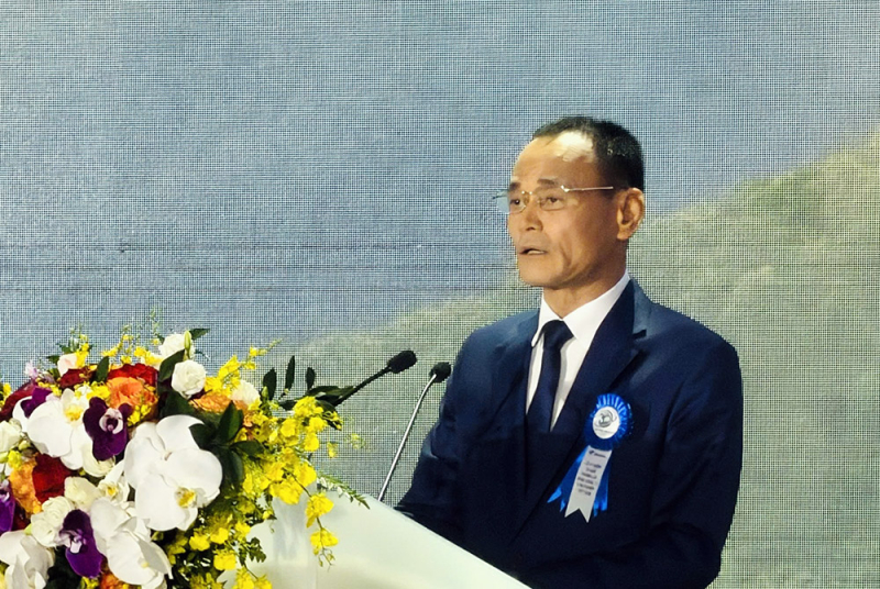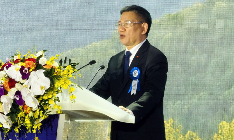 Ông Phí Mạnh Cường, Bí thư Đảng uỷ, Chủ tịch Tổng công ty Lâm nghiệp Việt Nam phát biểu tại buổi lễ