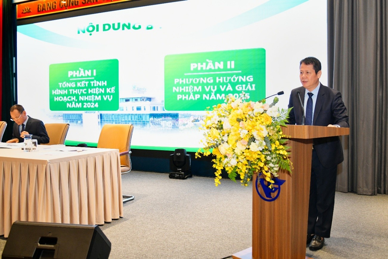 Ông Nguyễn Trung Kiên – TV.HĐQT, Phó Tổng giám đốc Vinafor trình bày Báo cáo của HĐQT về hoạt động năm 2024, Định hướng hoạt động năm 2025